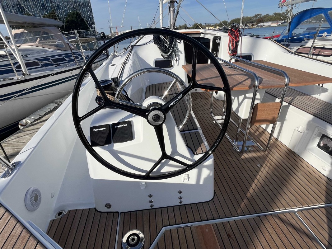 - Pack Downwind : gréement de spi asymétrique / code 0, winch de roof à tribord, girouette Windex, delphinière polyester.