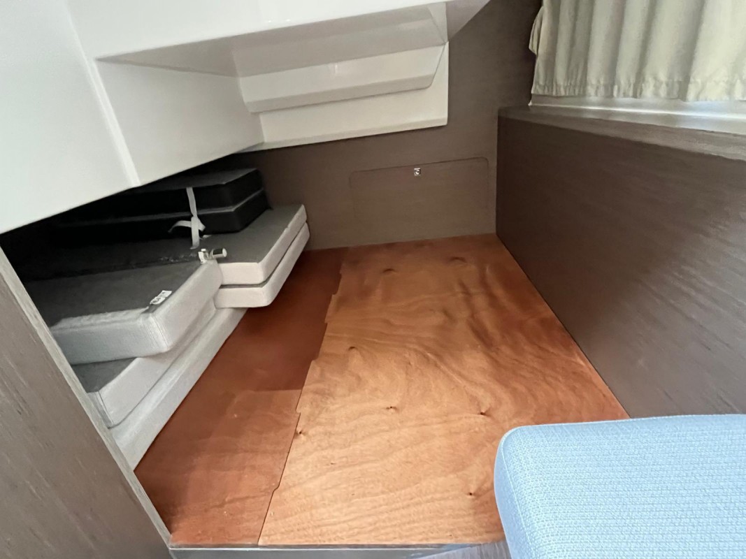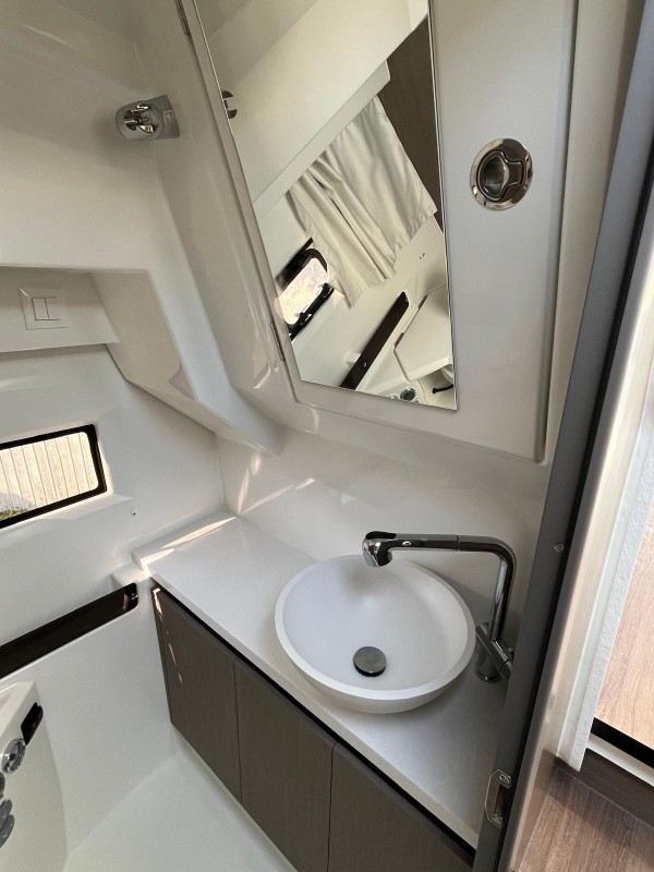 • FINITION PREMIÈRE comprenant : Guindeau électrique, coussins de cockpit arrière, réfrigérateur 60L, Douchette de cockpit, Éclairage à LED, Assise de toilette, Bandeau de lit cab avant, anneau de treuillage.