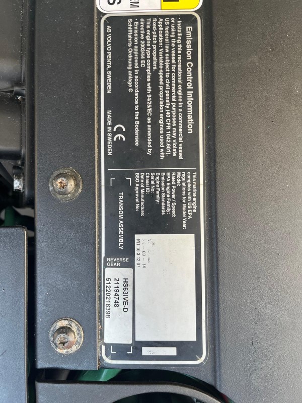 • Propulsion : VOLVO D4 – 300 V DRIVE commande électrique 1078h