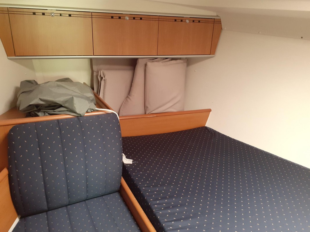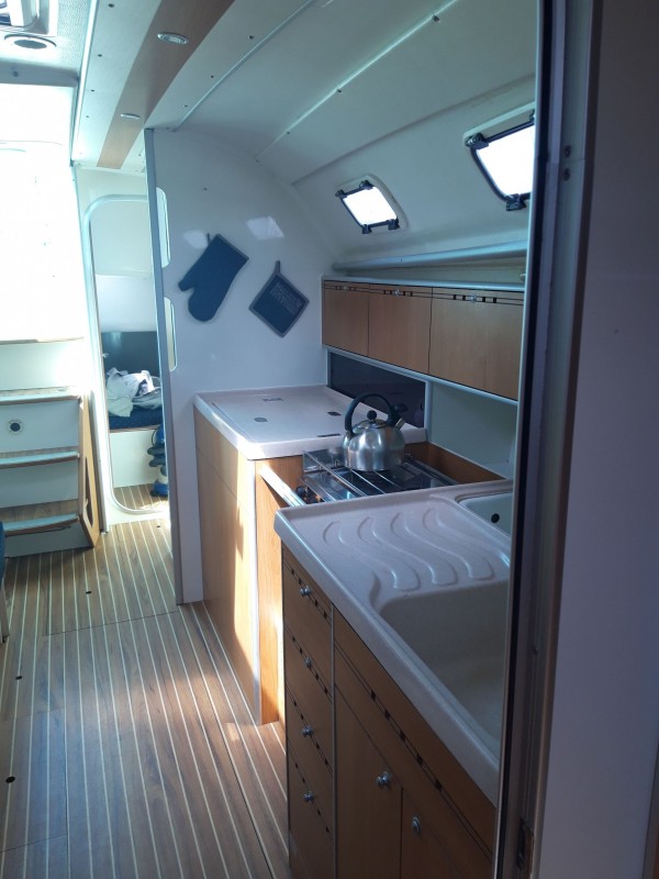 *Gréement/Voiles : Grand-voile Fullbatten (prise de ris automatique), Lazy-bag, Génois sur enrouleur (Bande anti UV 2017), Spi symétrique + tangon, Gennaker sur emmagasineur, Spi asymétrique avec chaussette.