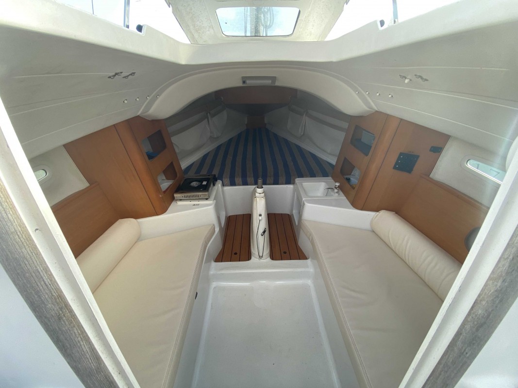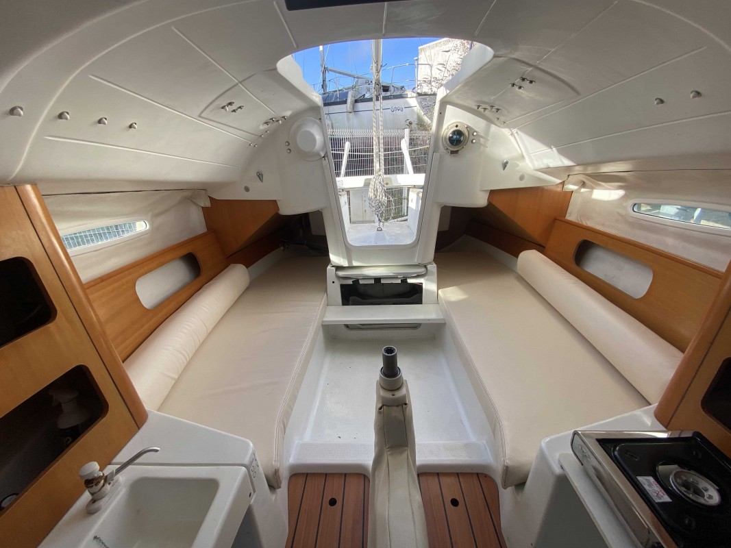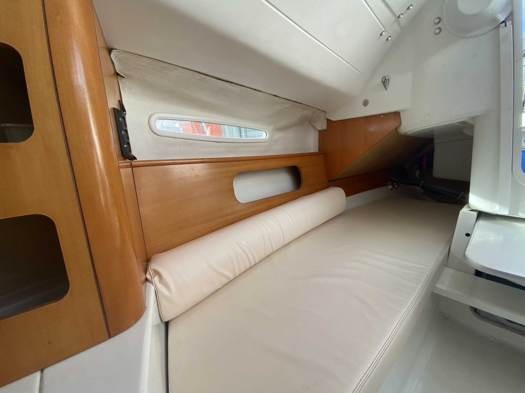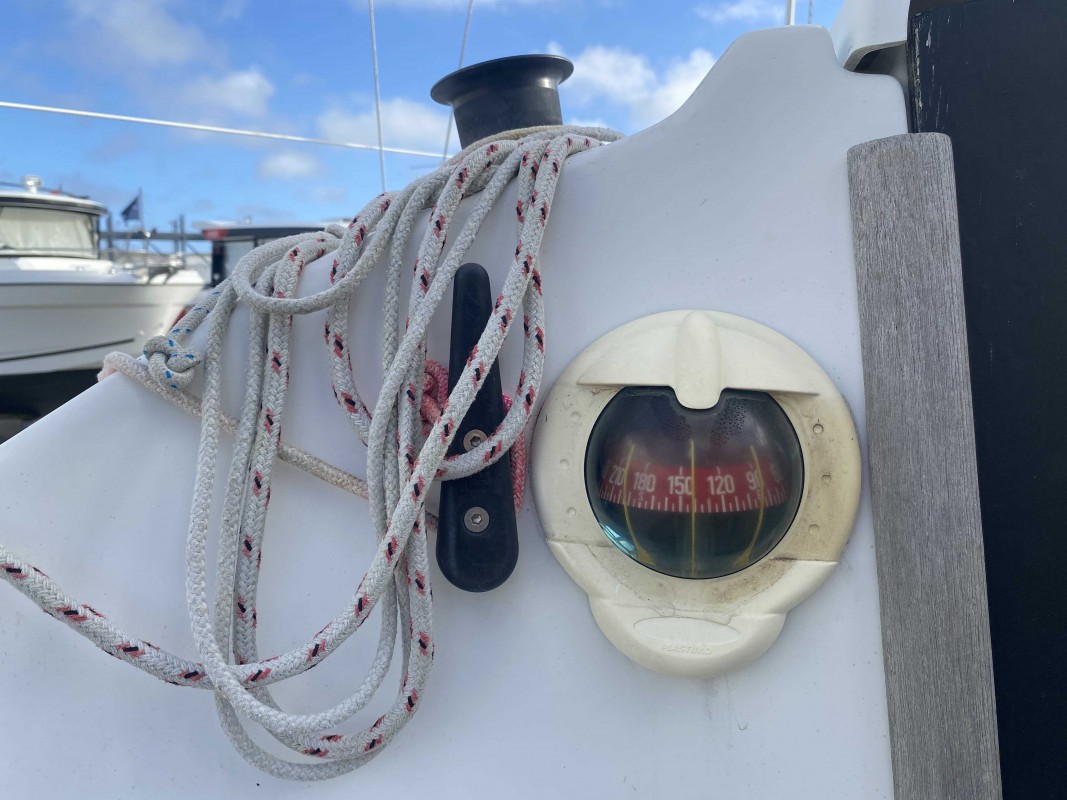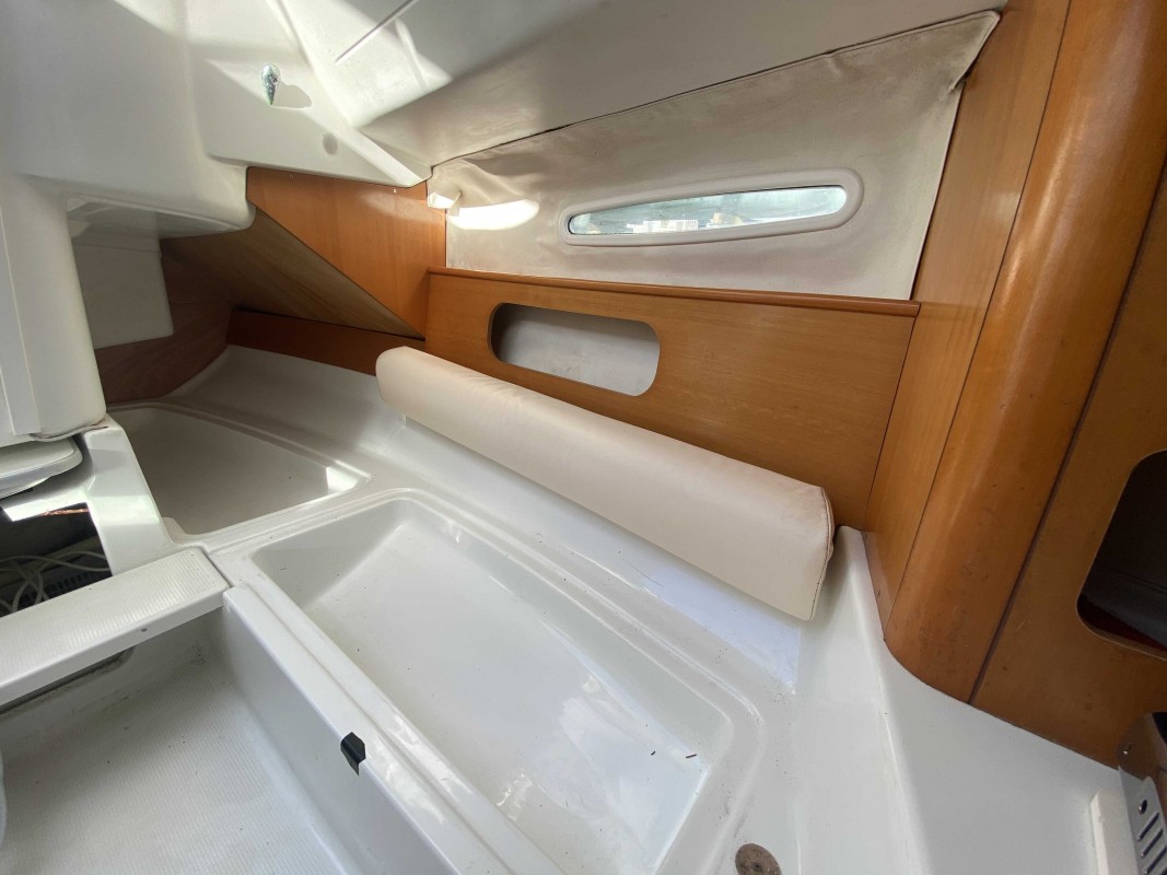 Barre franche, Bi-safrans, 2 winchs, Compas, échelle de bain, coffre de rangement dans le cockpit sur tribord et bâbord, 4 Spinlocks, Table de Cockpit, Chaise Hors-Bord