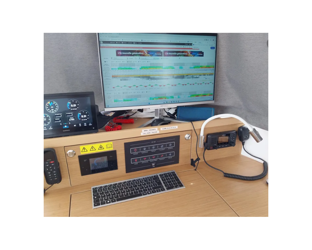 *Électronique : Électronique Garmin - Girouette anémomètre - 2 speedo sondeur bâbord et tribord - Pilote Reactor 40 Garmin - Télécommande pilote - Radar Garmin - Traceur 12 pouces console tribord - Traceur 9 pouces table à carte - Lecteur de carte sd externe - Cartographie à jour Europe, Atlantique , Antilles, Golf du Mexique, Cap vert, Afrique de l’Ouest - PC 24 pouces table à carte (pour Max Sea ou Adrena) - VHF et AIS Garmin - Camera WIFI sur traceurs Garmin -Commande pilote et répétiteur multi console de barre bâbord - Antenne et TV carré - TV Android cabine arrière tribord - Starlink mini plus.