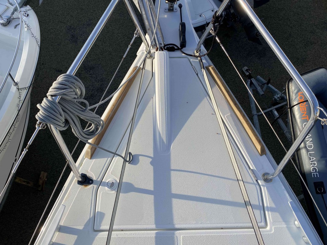 *Gréement/voiles : Grand-voile semi-lattée Dacron (30.60m²), Génois/enrouleur Dacron (24.60m²), Gréement de spi asymétrique + delphinière, Code 0 sur emmagasineur, Pack performance, Drisses en Dyneema, Lazy-bag, Sacs à drisses.