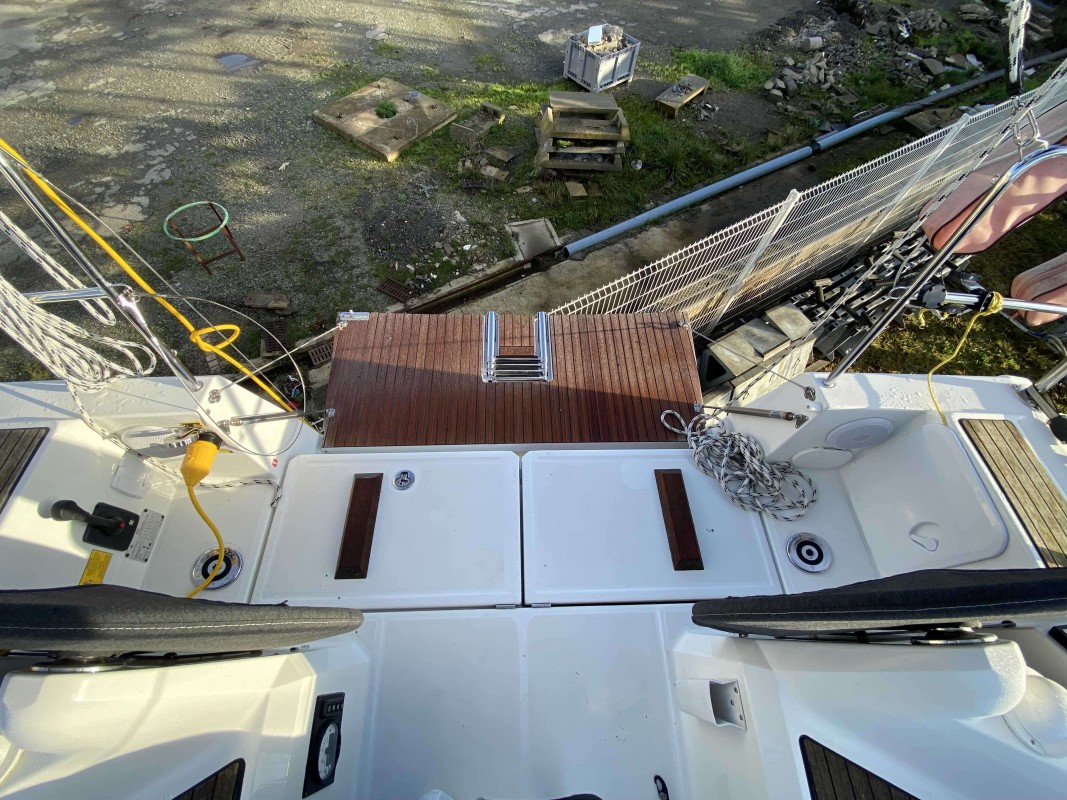 *Extérieur : Capote de roof, Housses de barre à roue, Housse de table de cockpit, Bimini avec lampes LED, Support moteur HB sur balcon arrière, Douchette de cockpit eau chaude / froide, Plateforme de bain basculante, Guindeau électrique 1000W, Coque Gelcoat gris, Stickers Limited Edition, Taquets au maître-bau, Hale-bas rigide, Portes dans les filières, Portique sur mesure avec 2 panneaux solaires (2x175W).