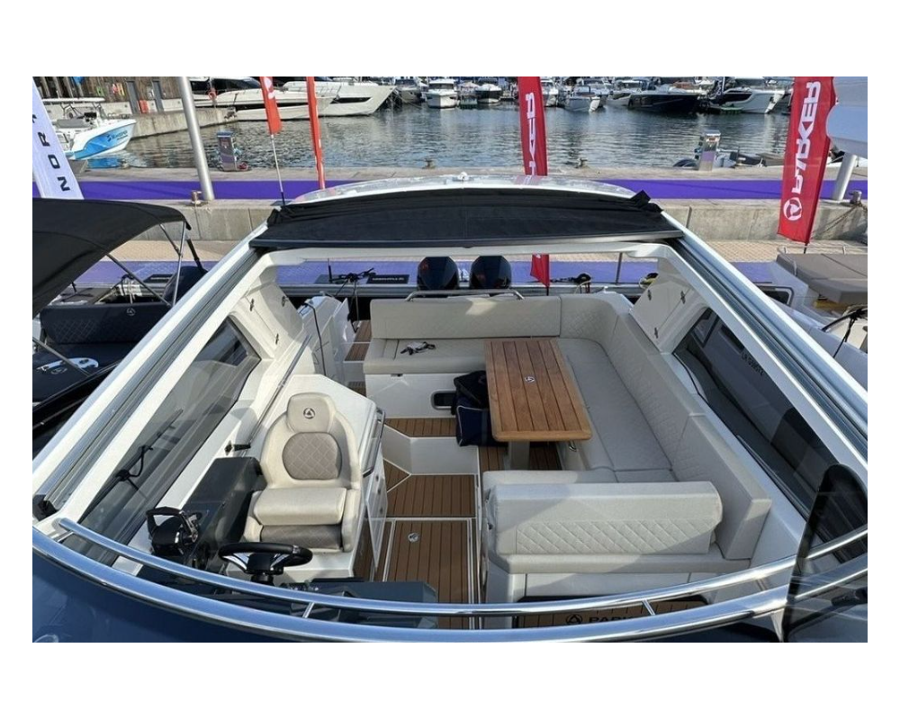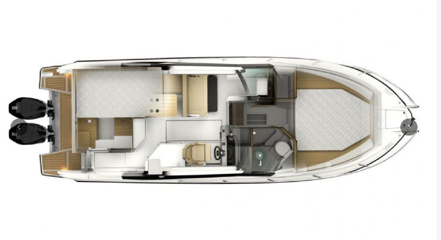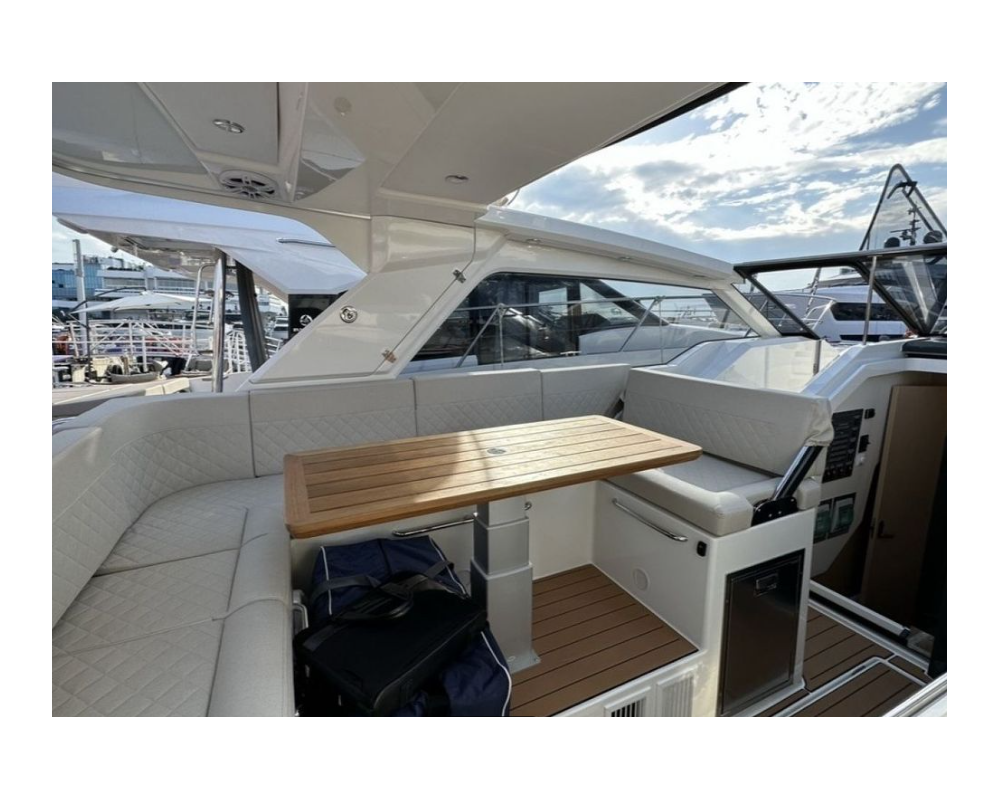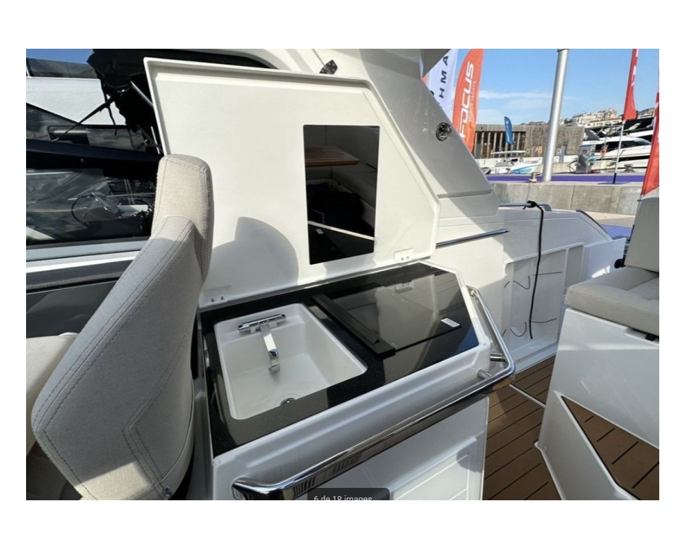 *Extérieur: Equipée du système DOCKMATE (Aide amarrage bateau)- Bain de soleil avant et arrière 3 places - Roll bar - cockpit modulable-douchette - nombreux rangements-Taud - Capote -Guindeau électrique -